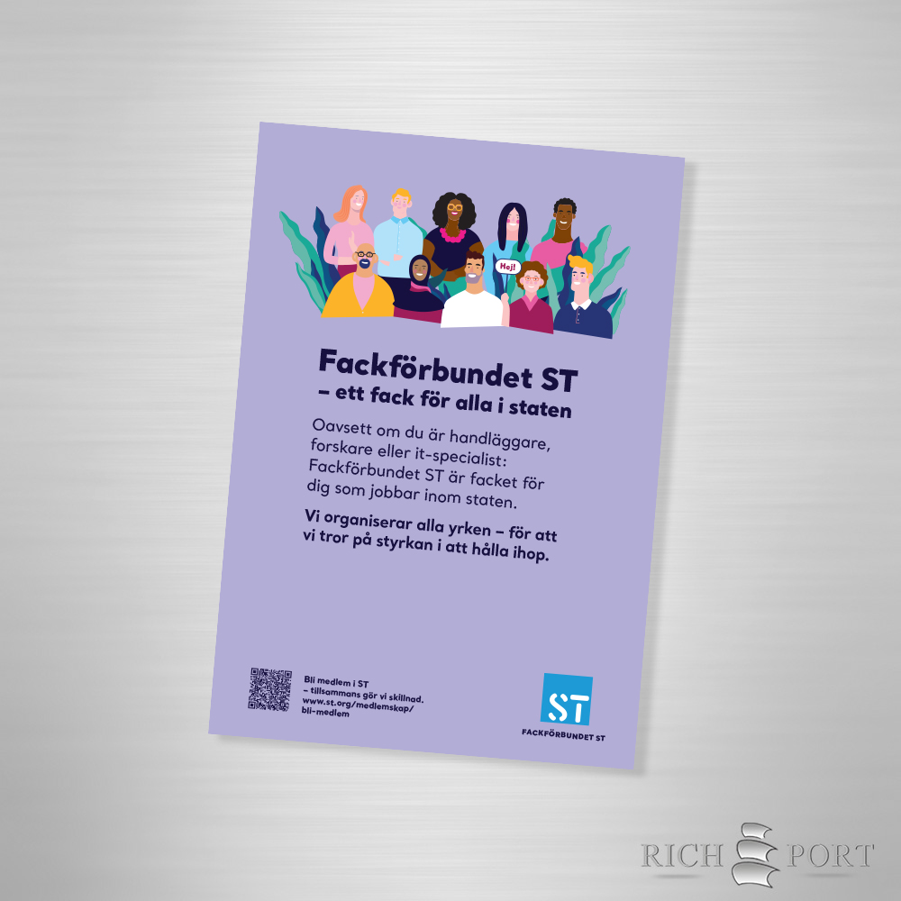 Med fokus på sammanhållning och gemensam styrka visar affischen varför ST organiserar alla yrken – för att skapa bättre villkor, starkare inflytande och en tryggare arbetsvardag. Ett utmärkt informations- och inspirationsmaterial för arbetsplatser inom statlig verksamhet.