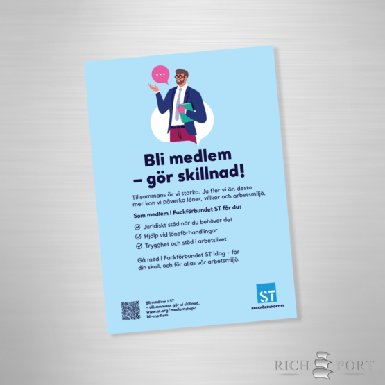 Fackförbundet ST organiserar alla som jobbar på statligt uppdrag, även tidigare statliga bolag. I vår Webshop hittar du värvande och användbara trycksaker och profilprodukter som passar lika bra på jobbet som fritiden.